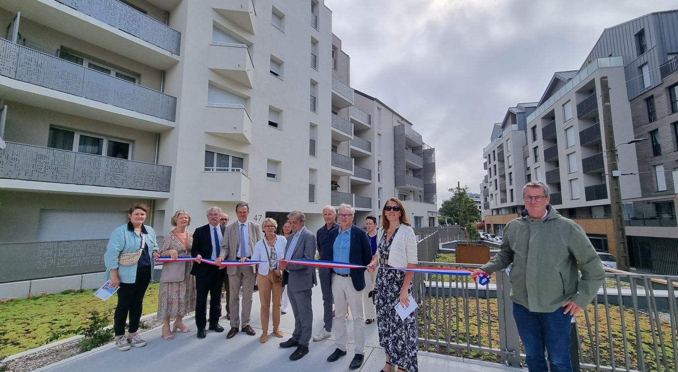 En parallèle, Emeraude Habitation a saisi l’opportunité de ce projet pour optimiser le foncier existant et y construire 19 logements sociaux supplémentaires (10 T2, 4T3 et 4 T4), sur l’emprise d’un ancien parking. Cette nouvelle résidence, mise en service en mai 2025, s’inscrit dans une démarche intergénérationnelle : 9 logements (7 T2 et 2 T3) y ont été adaptés selon notre référentiel Sénior et Sénior+, permettant à la fois à des personnes âgées et à des familles de continuer à vivre au coeur de l’attractif quartier malouin de Rocabey. Ce programme s’intègre dans la convention du Nouveau Programme National de Renouvellement Urbain (NPNRU) porté par Saint-Malo Agglomération. À ce titre, 16 logements participent à la reconstitution de l’offre locative.