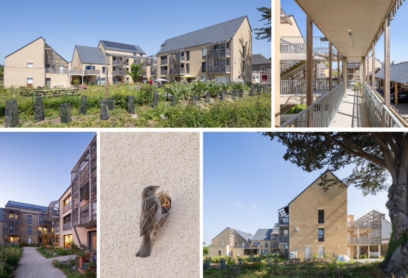 - le bâti est pensé comme un biotope : des nichoirs à moineaux, martinets et mésanges ont été intégrés à la construction, ainsi que des gites à chiroptères (chauves-souris)…